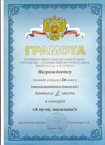 1 "в" класс - 2 место в конкурсе "А ну-ка, мальчики!" | |