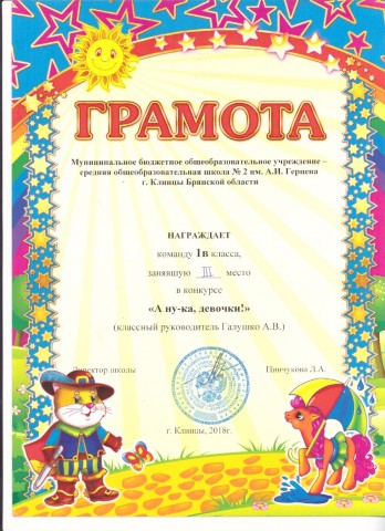 1 "в" класс - 3 место в конкурсе "А ну-ка, девочки!" | |
