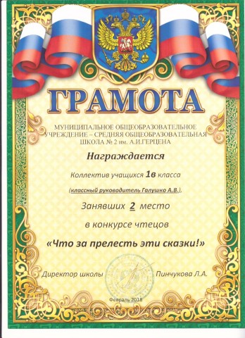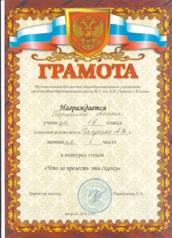 Горошко Алина - 2 место в конкурсе чтецов "Что за прелесть эти сказки" | |